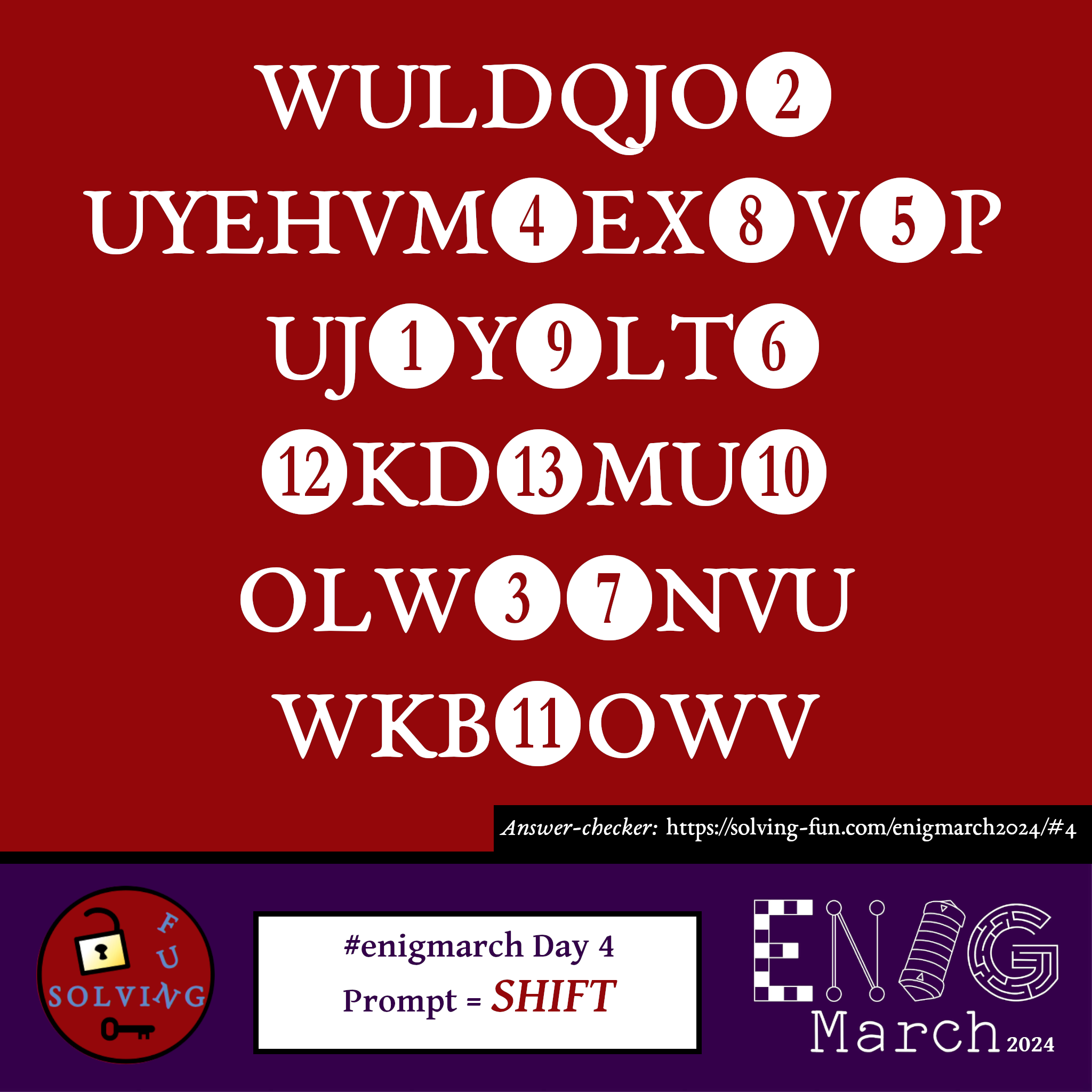Extra: more puzzles from Enigmarch 2023, Enigmarch 2022, and by scrolling down on Solving Fun’s Facebook page.
